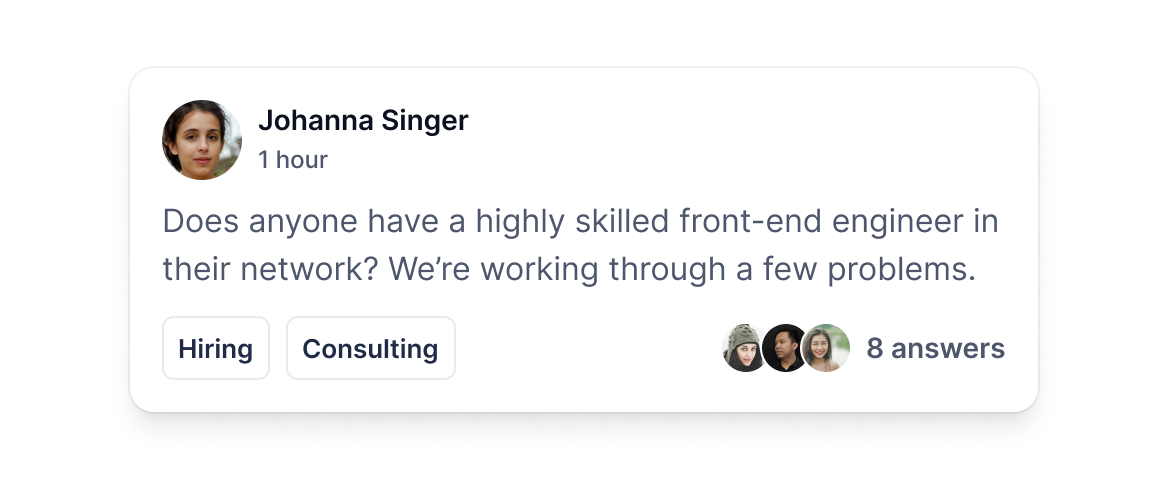 Easily find the most relevant people and answers you need, when you need them. Get notified when there are new members who meet the criteria you’re looking for.